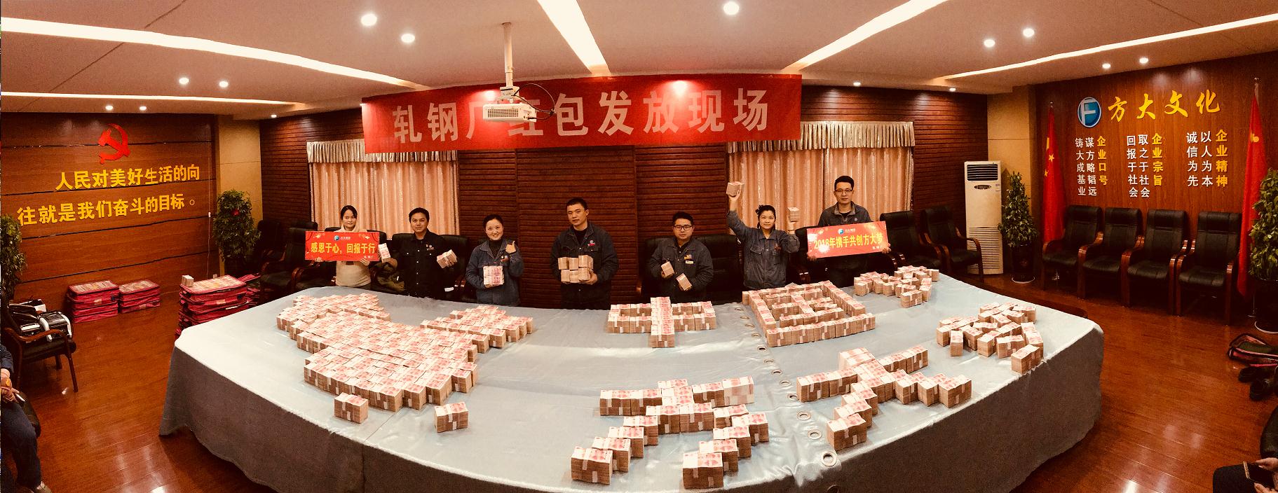 辽宁方大集团始终坚持牢记党恩,回报社会和员工,根据经营发展实际在春节前建议相关企业为员工发放红包,感谢党和政府为企业发展提供的良好平台,感谢员工为企业、为社会所作贡献。
